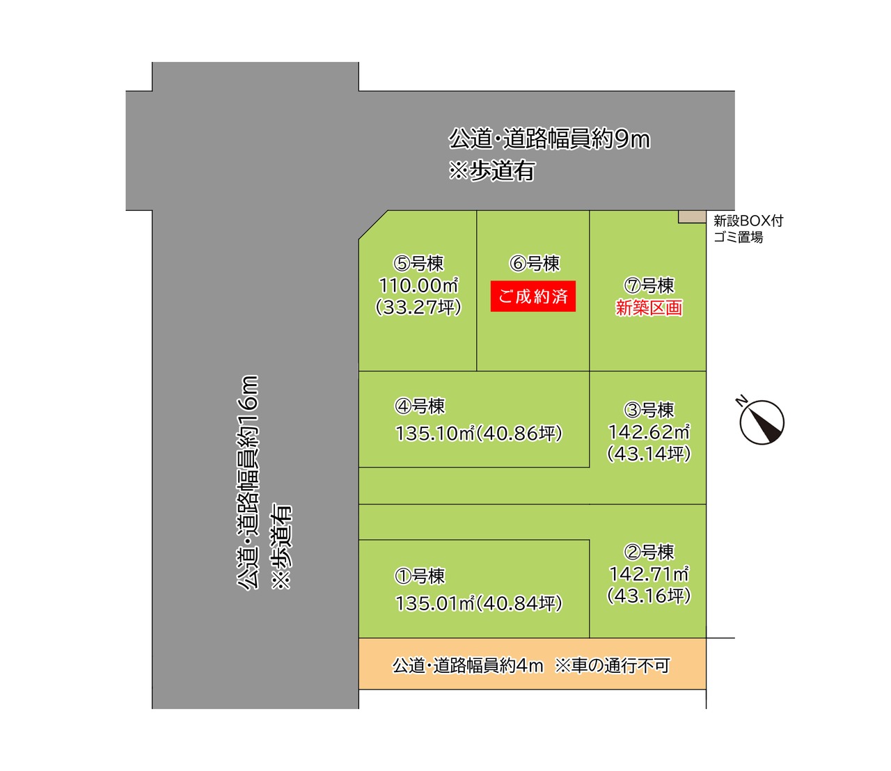 敷地面積も約33坪~約43坪!区画によっては、2台駐車も可能。